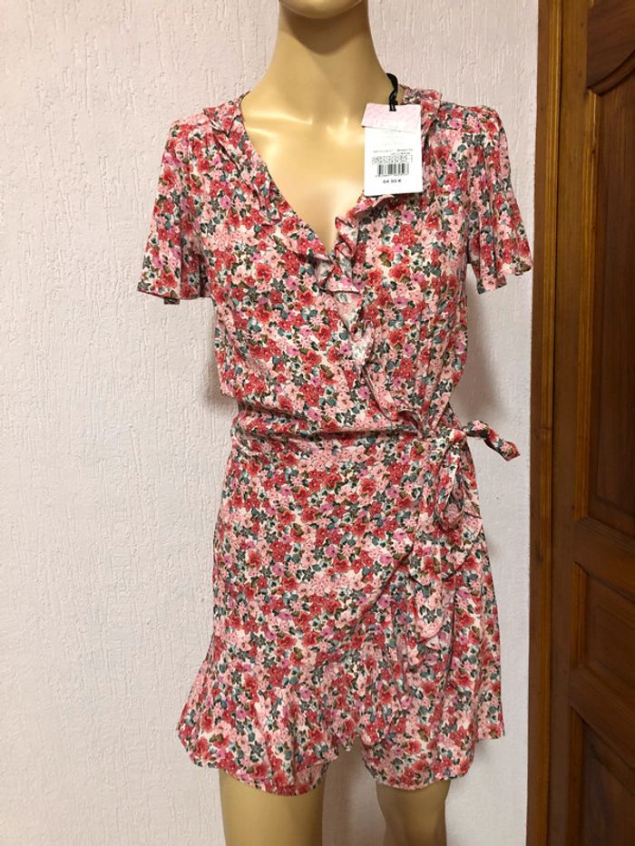 Combinaison shorty short effet trompé l’œil robe À fleurs rose vert et blanc Taille 38 Naf naf Taille élastique, fermeture décolleté pression et à la taille par ceinture à nouer N e u v e avec étiquette (valeur 64,99€)