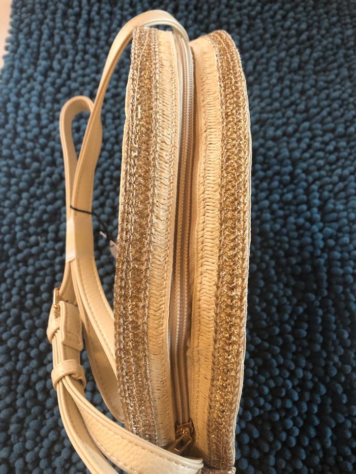 Sac rond en bandoulière Naf naf 30 cm de diamètre Beige et doré Fermeture éclaire sur le dessus Ne u f (valeur 39,99€)
