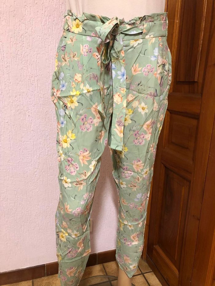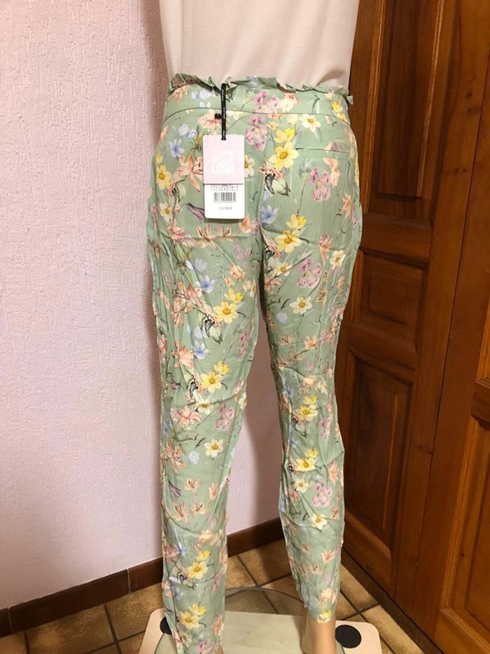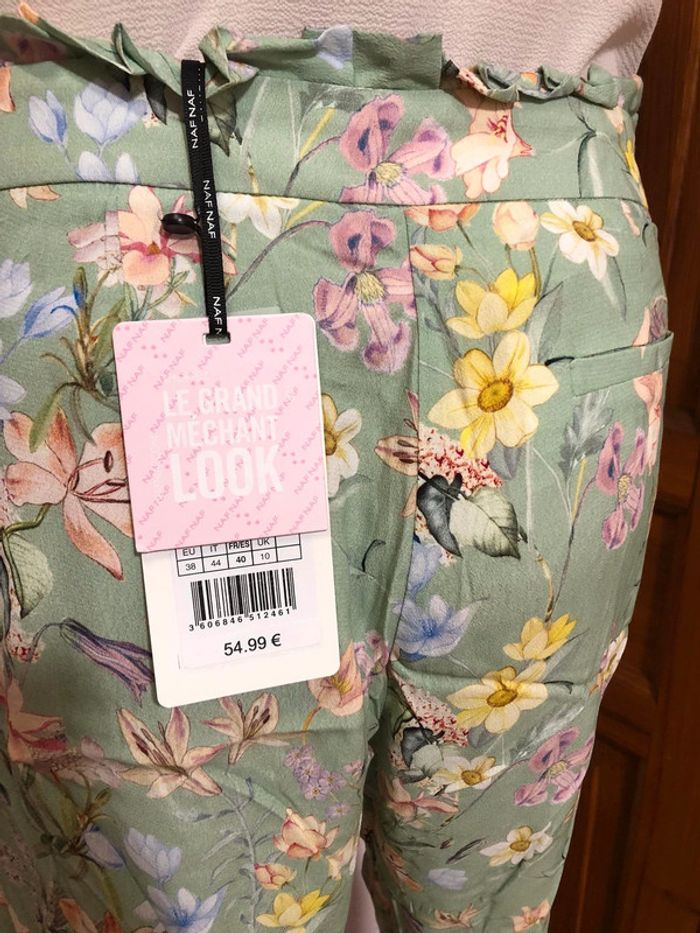 Pantalon carotte d'été à fleurs dans les tons pastel vert d'eau Taille 40 - Naf naf avec ceinture imprimé floral jamais porté - n e u f avec étique tte (valeur 54,99€) #nafnaf #pantalon