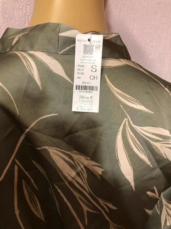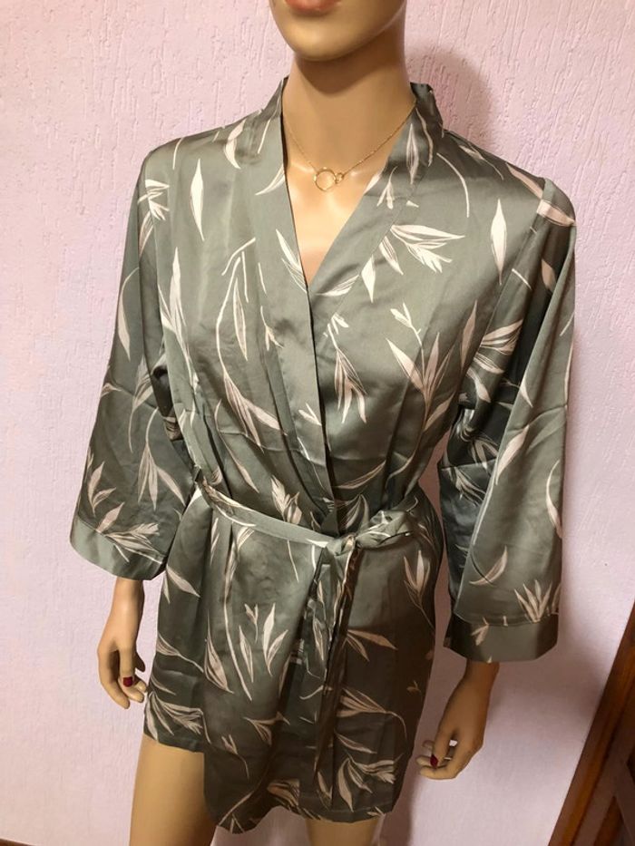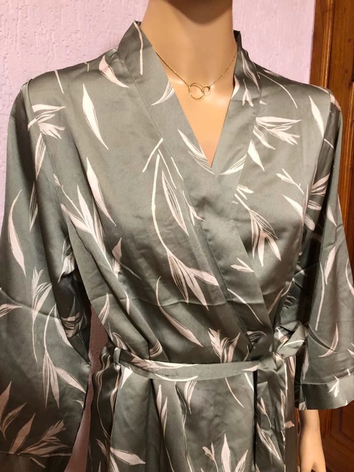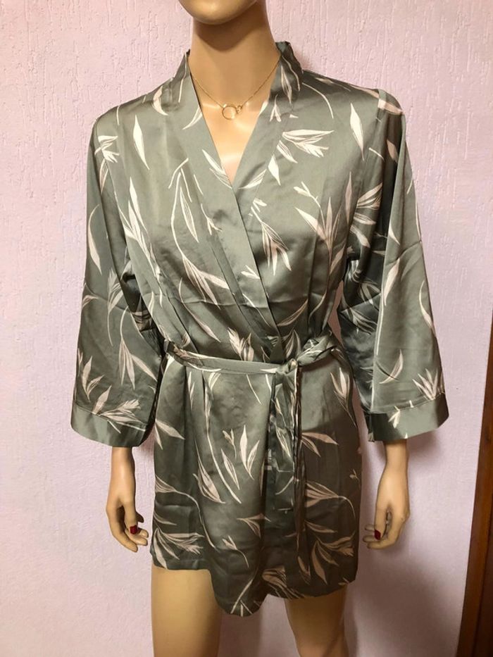 ,Kimono déshabillé Etam lingerie Taille S couleur kaki argile avec motifs épis blanc crème matière soyeuse n e u f valeur 39.99€
