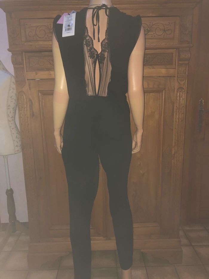 Combinaison naf naf noire Col en v avec dentelle Dos ouvert avec dentelle Taille 36 Très chic Jamais portée n e u ve avec e t i q u e t t t e Valeur 79,99€