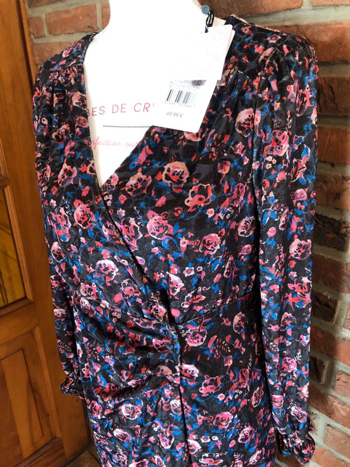 Robe porte-feuille fleurie naf naf matière un peu velours Taille 38 n e u ve (valeur 69,99€)