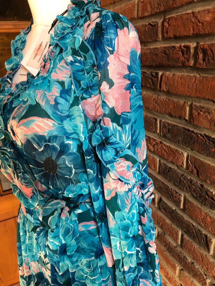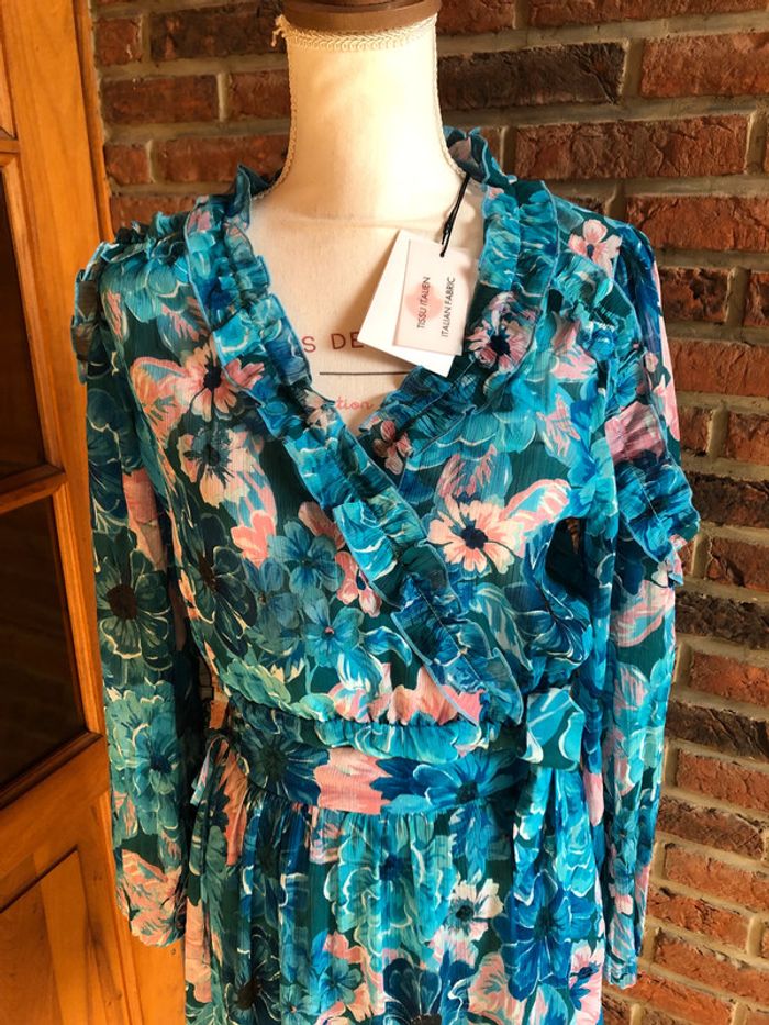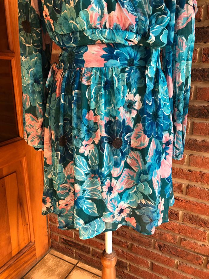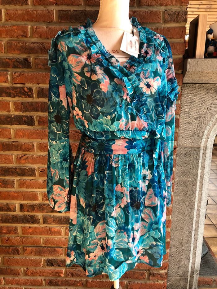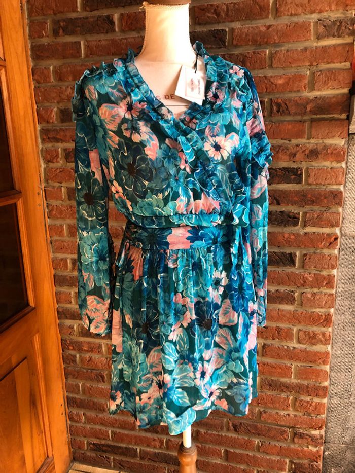 Ensemble assorti composé de : - une blouse cache cœur - une jupe taille élastique Naf naf Taille 38 Motifs fleurs Couleurs : bleu turquoise et rose pâle N eu f s avec étiquette (valeur 104,98€)