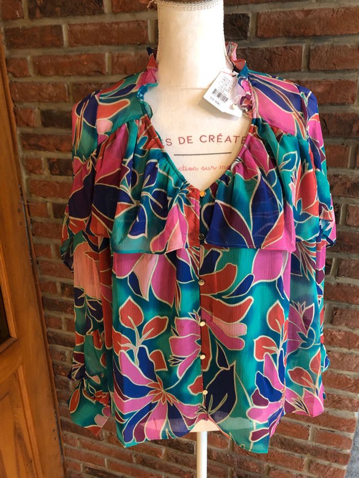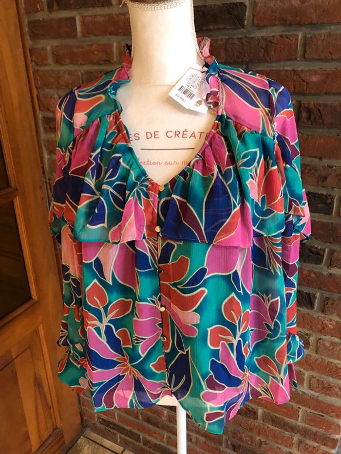 Blouse chemisier turquoise et rose Naf naf - n e u f - photo numéro 1