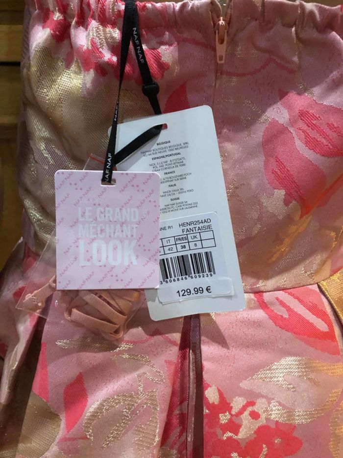 Robe bustier Naf naf Très chic, idéal pour un mariage ou une fête Taille 38 bretelles amovibles couleur rose, rose pastel, blanc et doré jamais portée, valeur 129,99€ #Mllenafnaf_Nafnaf #Mllenafnaf_robe