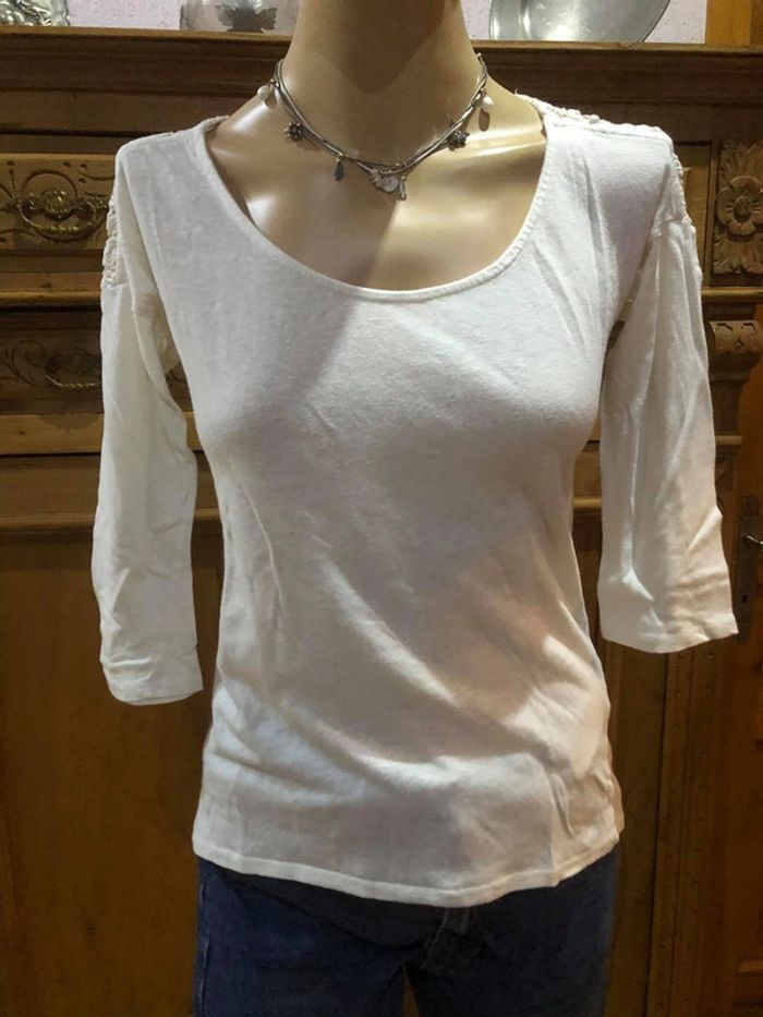 blouse épaule dentelle naf naf manches 3/4 couleur blanc crème peu portée taille S #Mllenafnaf_Nafnaf #Mllenafnaf_S