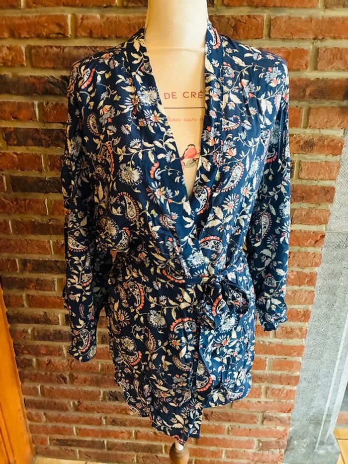 Kimono à fleurs Naf Naf Bleu marine avec motifs creme vert d’eau et corail Taille S Neuf jamais porté (valeur 54,99€)