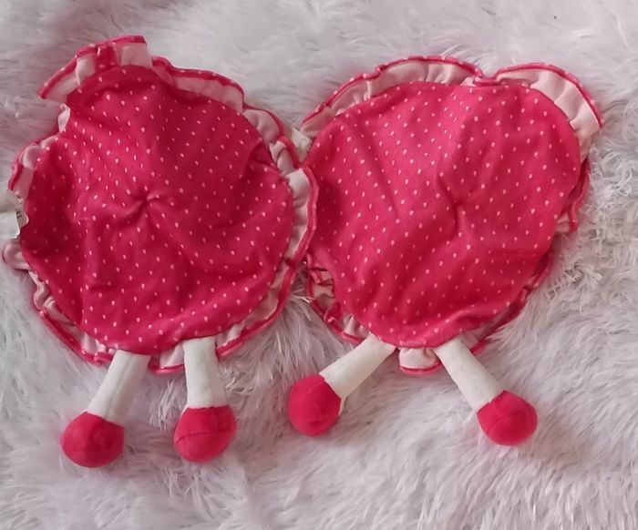 Lot de 2 doudous rond plat souris rose fushia et a pois blanc - fleurs - Pat & Ripaton - photo numéro 2
