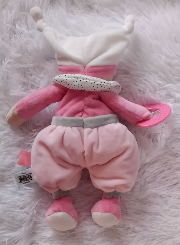 Doudou peluche ours brioche d activités en velours de couleur rose 2 tons