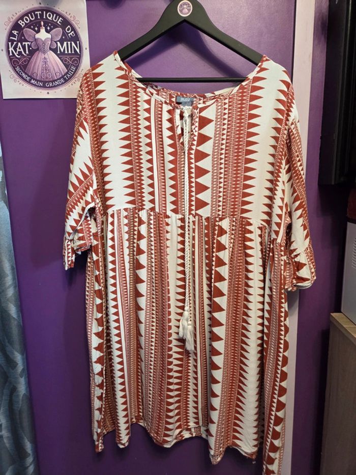📸 Photo principale générée par IA pour mieux visualiser le rendu porté. ⚠️ Le modèle réel peut légèrement différer. Merci de bien consulter les photos suivantes pour voir l’article réel. Vend Tunique manches courtes, très bon état. Marqué taille 50/52 mais correspond à un 52, voir dimensions ci-dessous. Longueur milieu dos 86cm Largeur d'aisselle à aisselle 70cm PAS D'ENVOI VINTED GO! #plussize #grandetaille #blousefemme52 #tuniquefemme52 #tuniquemanchescourtes52 #blousefluide52 #tuniquefluide52 #bleubonheur52 #femme52 #laboutiquedekatmin52