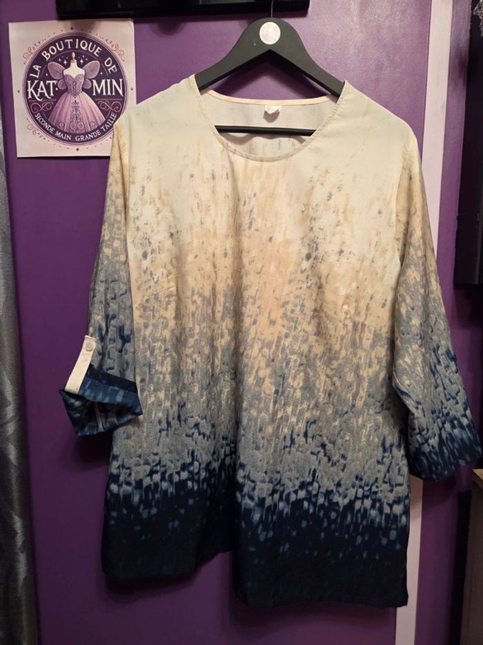 📸 Photo principale générée par IA pour mieux visualiser le rendu porté. ⚠️ Le modèle réel peut légèrement différer. Merci de bien consulter les photos suivantes pour voir l’article réel. Vend Blouse manches 3/4 fluide, très bon état. Manches retroussables. Longueur milieu dos 74cm Largeur d'aisselle à aisselle 66cm PAS D'ENVOI VINTED GO! #plussize #grandetaille #blousefemme50 #blousefluide50 #tuniquefemme50 #femme50 #laboutiquedekatmin50