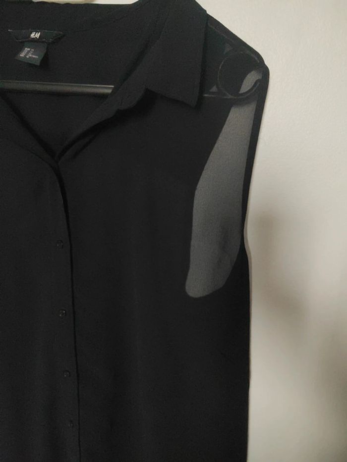 Chemise en voile noire H&M Taille 44 Boutonnée plus longue derrière Transparente Très bon état