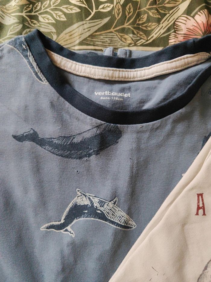 Lot de t-shirts manches longues Garçon Vertbaudet 8 ans Le baleine a des petits trous L'autre très bon état