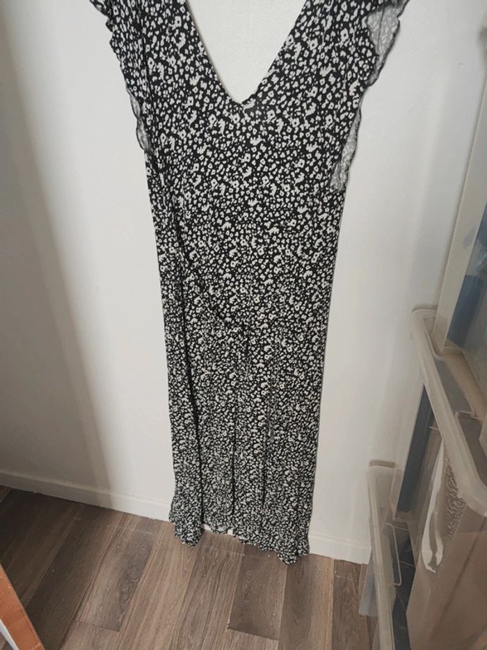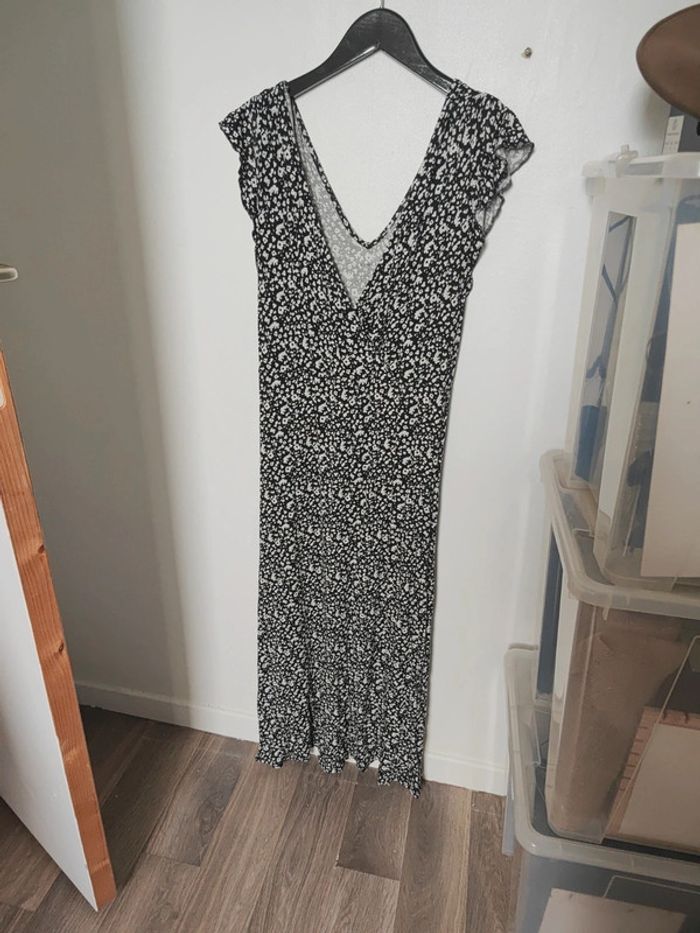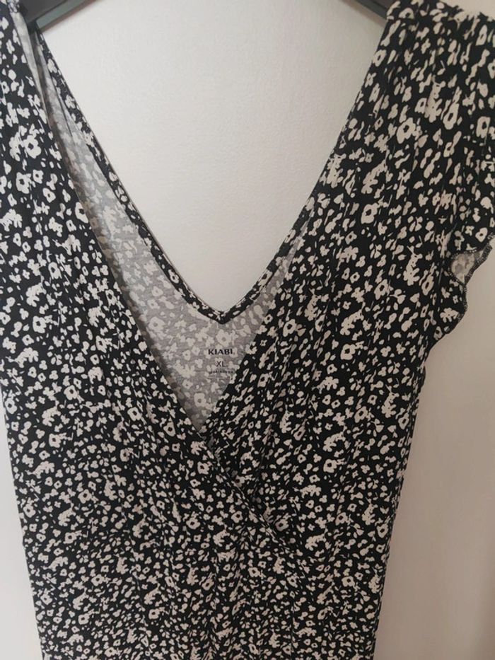 Robe longue d'été Kiabi Fleurie noire et blanche Taille XL correspond à du 42. En parfait état Se noue dans le dos