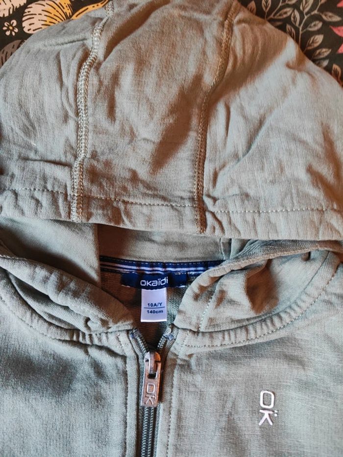 Gilet zippé Okaïdi 10 ans vert kaki Bon état général