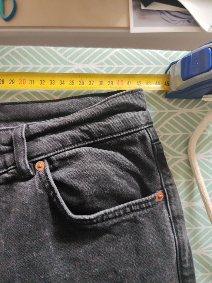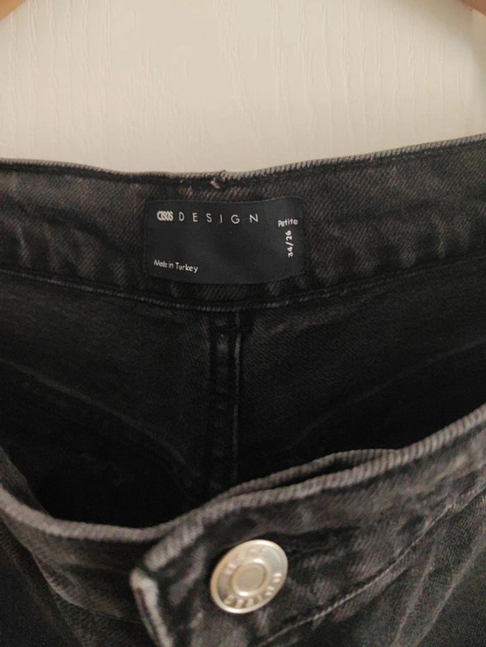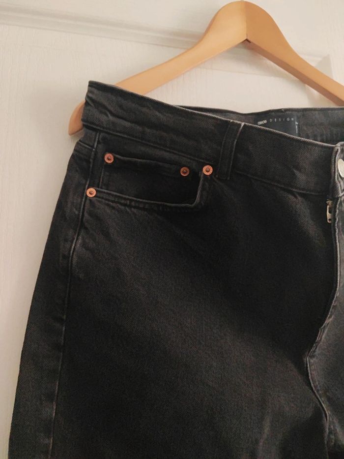 Jean noir femme Asos Taille 34 mais taille plutôt 42-44 que 44. Pas d'élastane à la taille Coupe 7/8 ème Droite