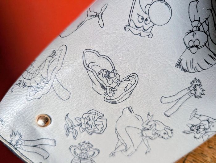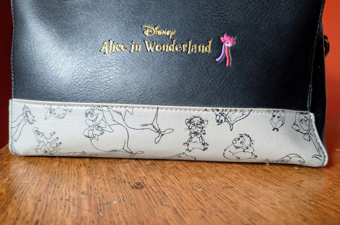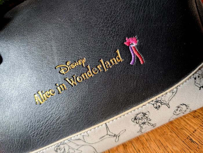 Sur l'avant gravé en doré "Disney Alice in wonderland" avec un momerath brodé
