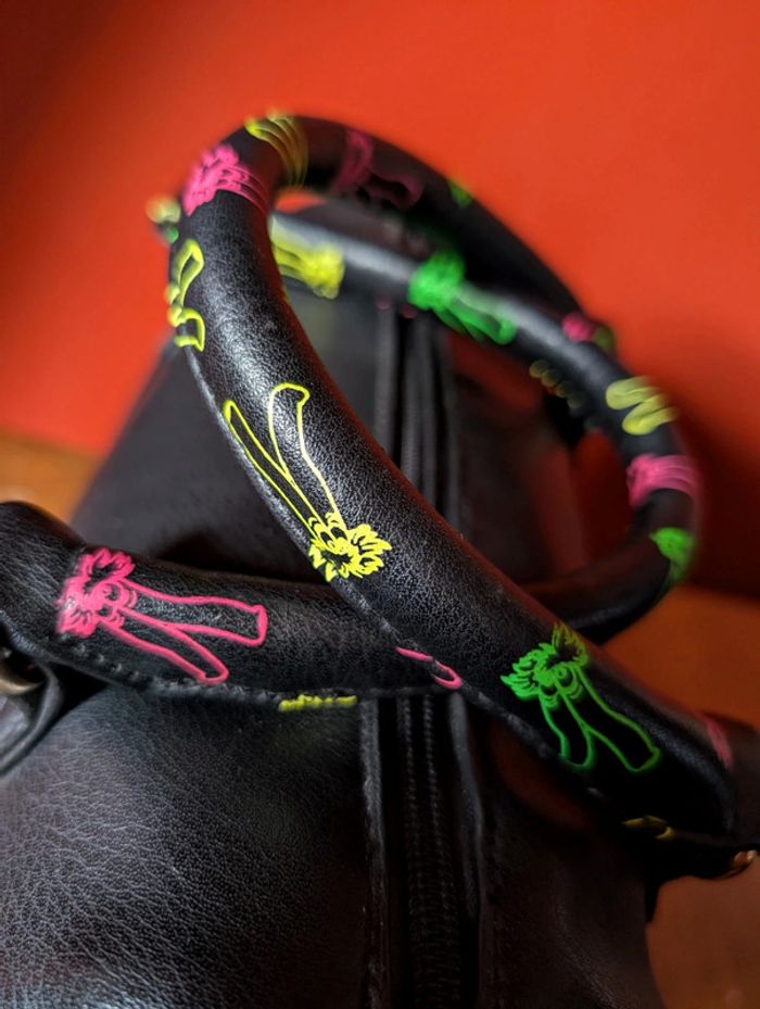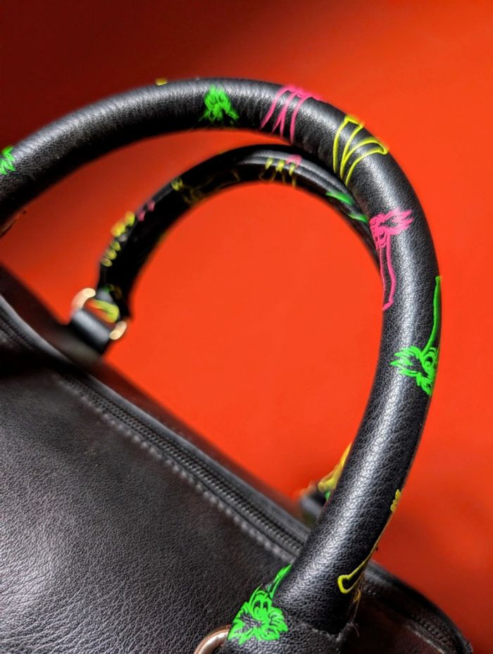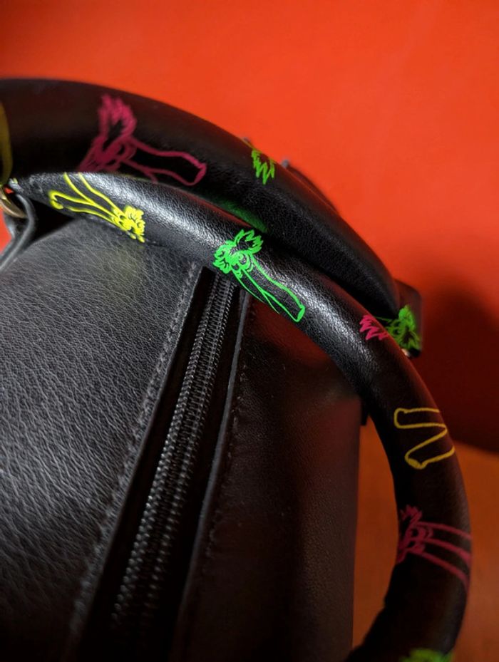 Des momeraths fluo et multicolore sont imprimés en léger relief sur les anses