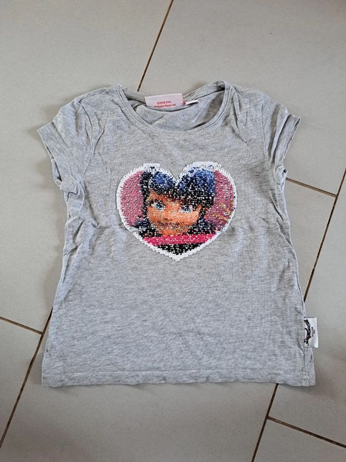 T-shirt à sequins miraculous 5 ans, très bon état, maison non fumeur #shakotte5ansfille