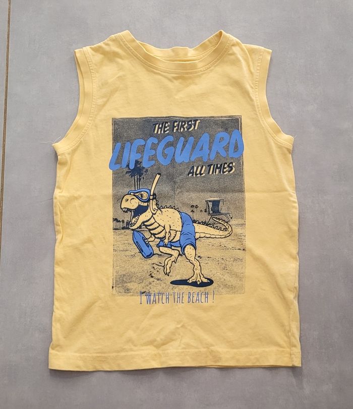 Débardeur de couleur jaune, avec motif, de la marque In Extenso, taille 6 ans (113-119 cm), en très bon état. Article lavé pour la vente.
