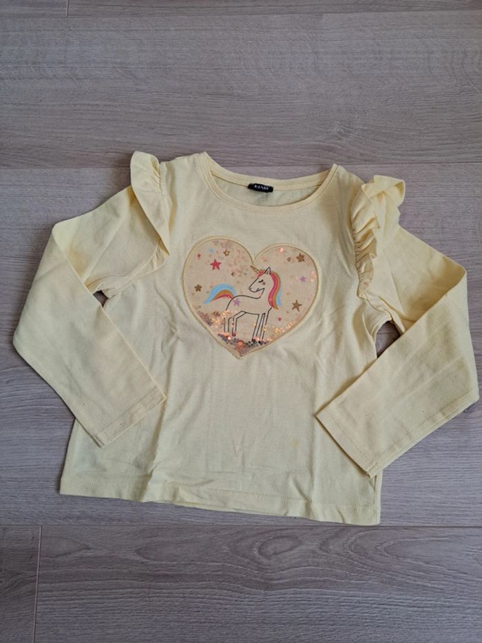 T-shirt manches longues licorne kiabi 5 ans, cf photo pour défaut sur la manche, maison non fumeur #shakotte5ansfille #shakottekiabi