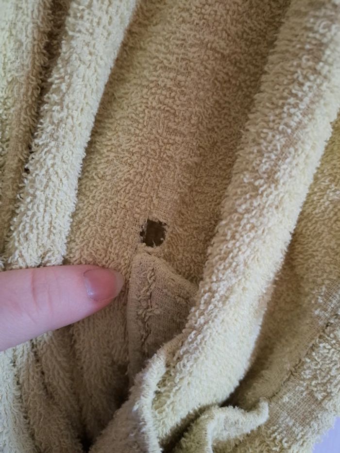 Peignoir éponge 46/48, beaucoup servi cf défauts sur les photos, maison non fumeur #shakottefemme
