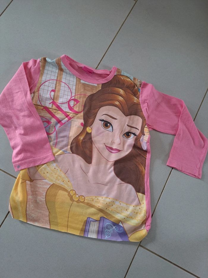 T-shirt manches longues disney 5 ans, une tache sur la manche et ourlet avant décousu, maison non fumeur #shakotte5ansfille #shakottedisney