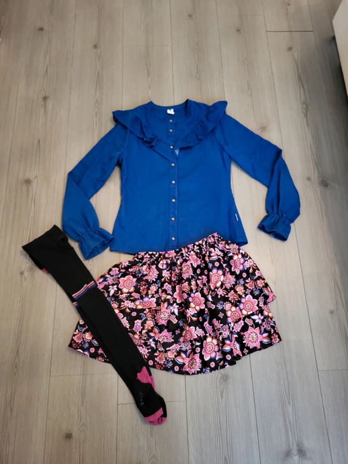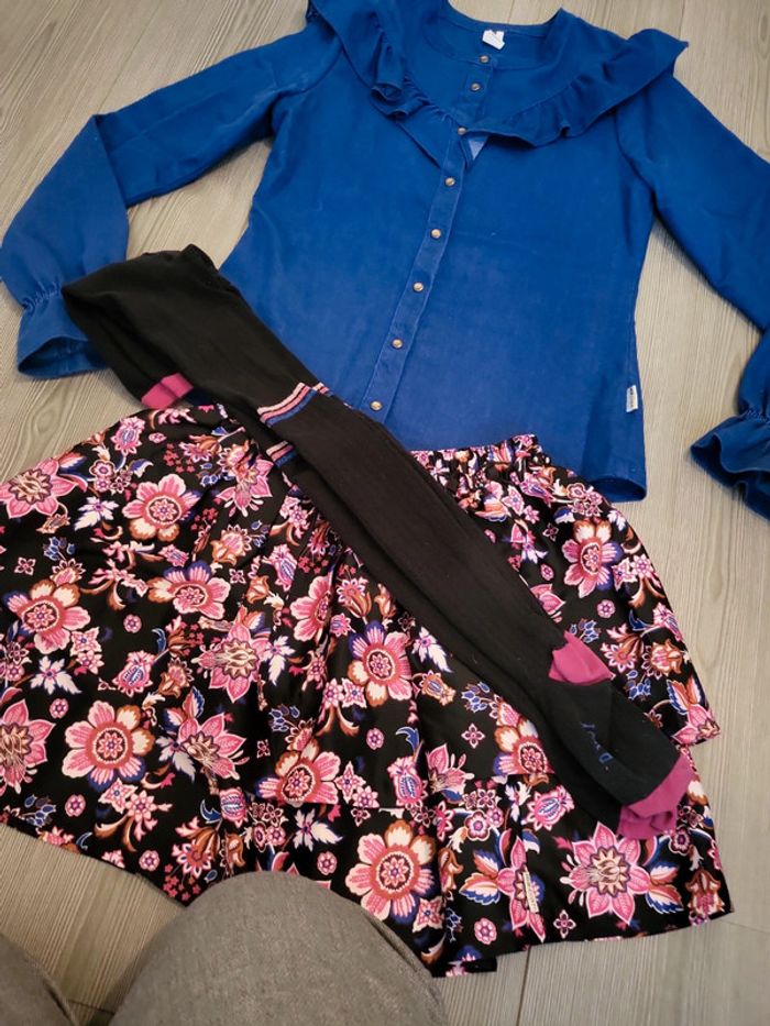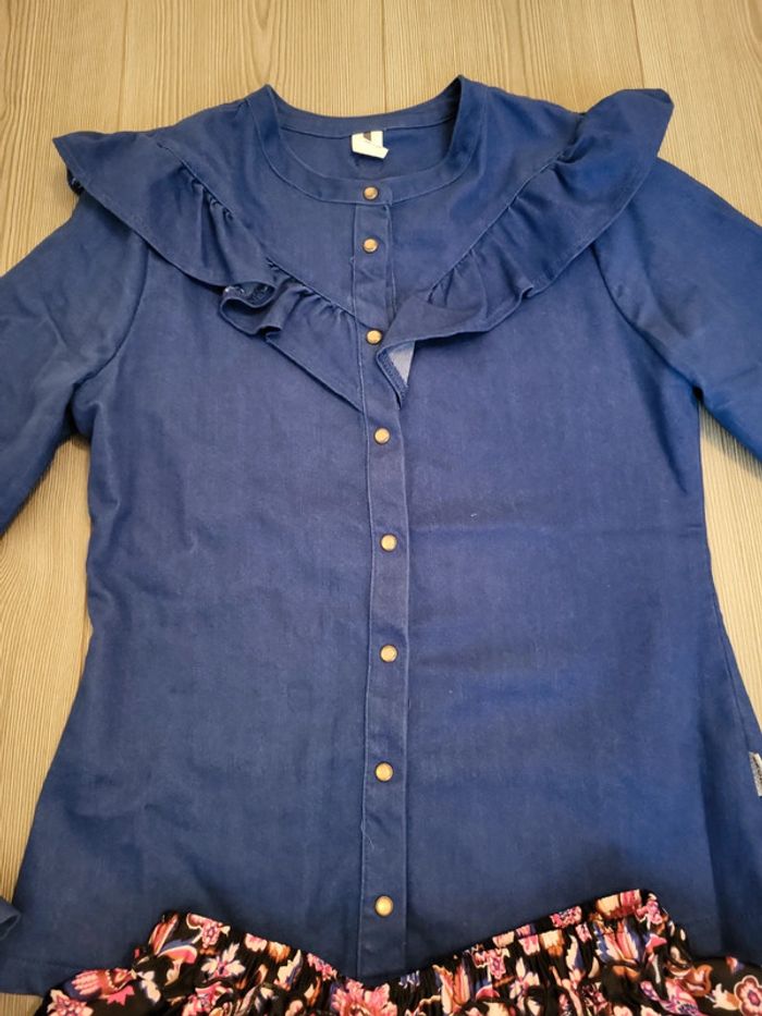 Jupe et haut chemise en jean comme neuves Collants offerts 158/164 cm