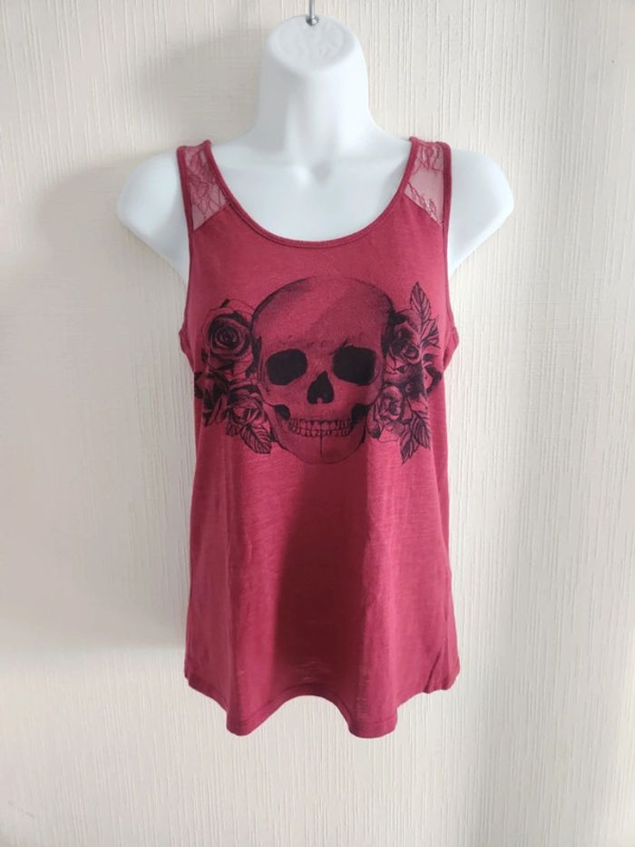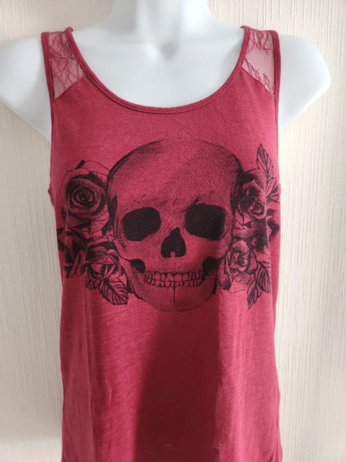 Tee-shirt débardeur Undiz XS bordeaux motif tête de mort - photo numéro 1