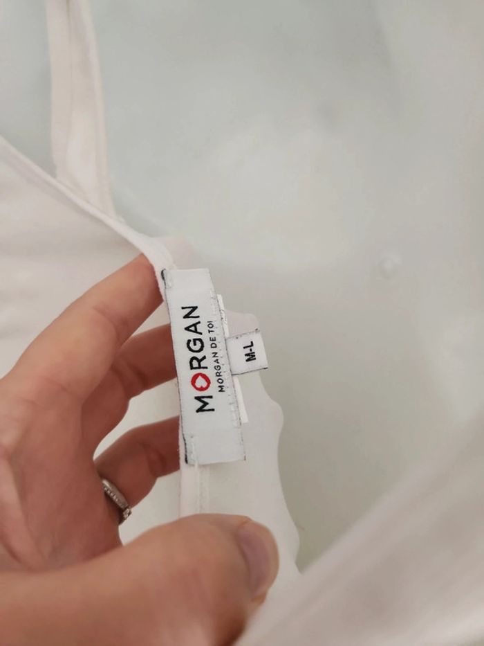 Joli haut body de la marque Morgan en taille M-L, convient également pour un S sur une grande, détails en découpes sur la poitrine, 2 niveau d'attache en bas, dégagé au niveau du dos, l'étiquette composition est coupée en haut du dos Autres articles de cette taille ici: #pseudodofemme38 #pseudodofemme36 Envoi rapide et soigné via diverses plateformes #morgan #body #blanc #morgandetoi #dentelle #dosdenudé #dosnu