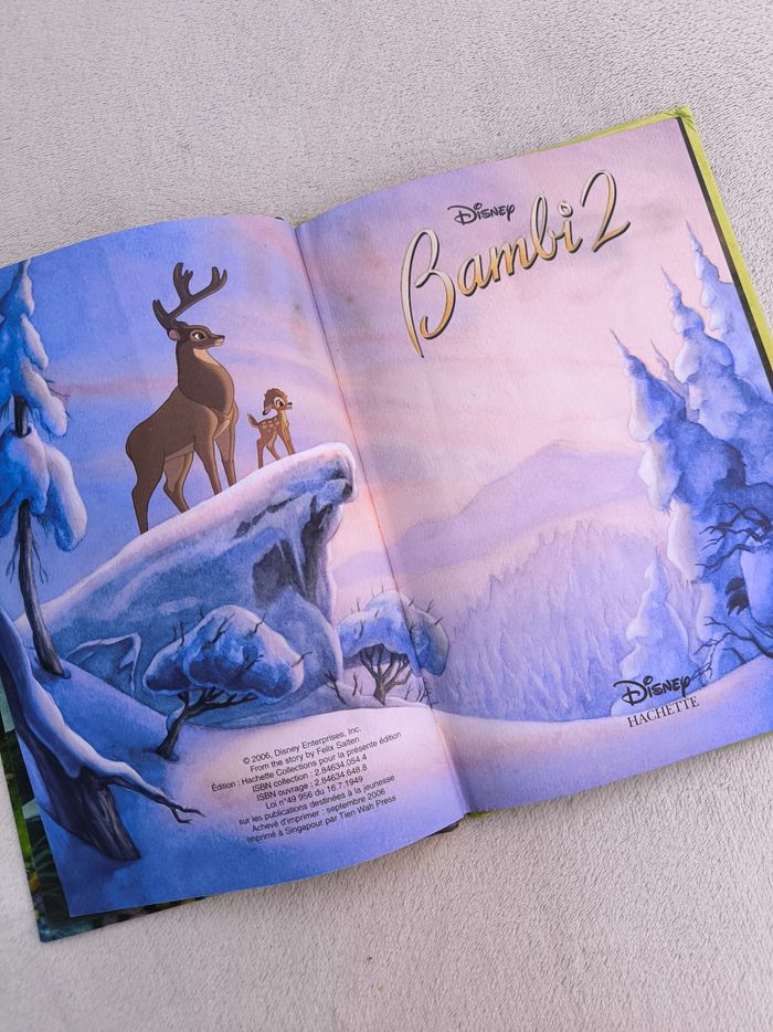 Livre Bambi 2 Éditions Hachette, Disney Année 2006 • Pages avec feutre, une page déchirée • Coins abîmés En état satisfaisant #evelyne_livres