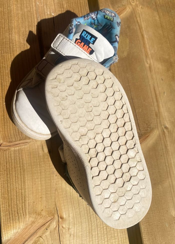 Baskets plates blanches motifs sports de balles et ballons Style Stan Smith Rule the world Traces d’usure mais très bon état général Multicouleurs colorés