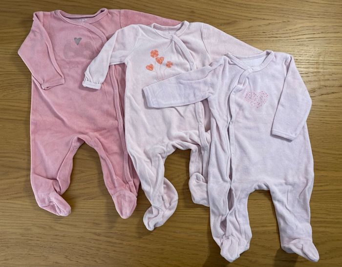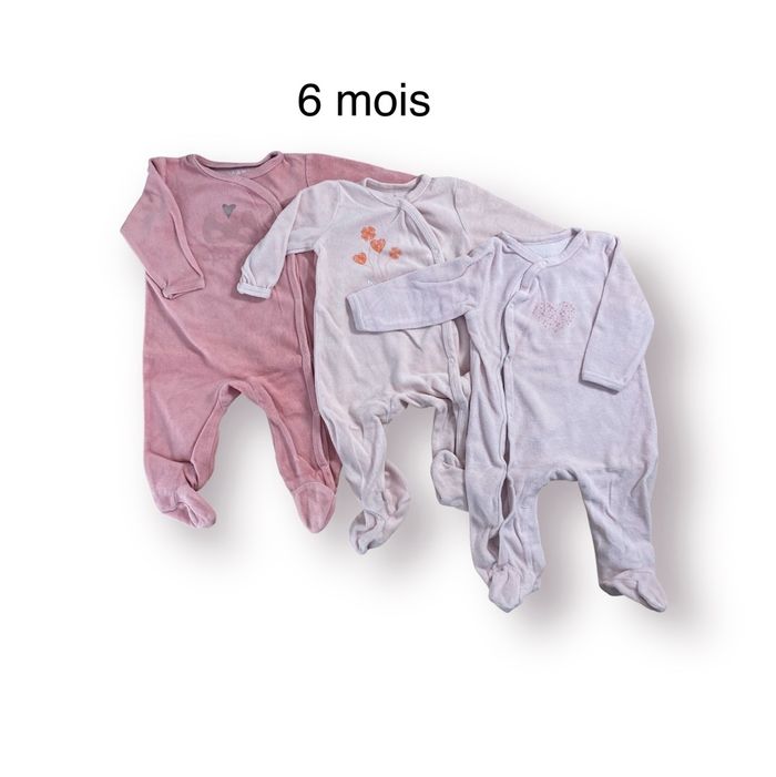 Kimadi Lot de 3 Pyjamas Grenouillères roses Taille 6 mois - photo numéro 1