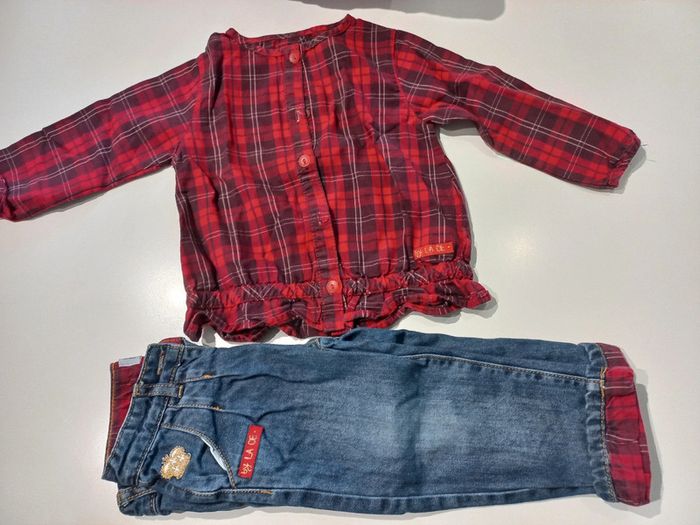 Ensemble 18 mois 1 blouse ecossaise 1 jean assorti