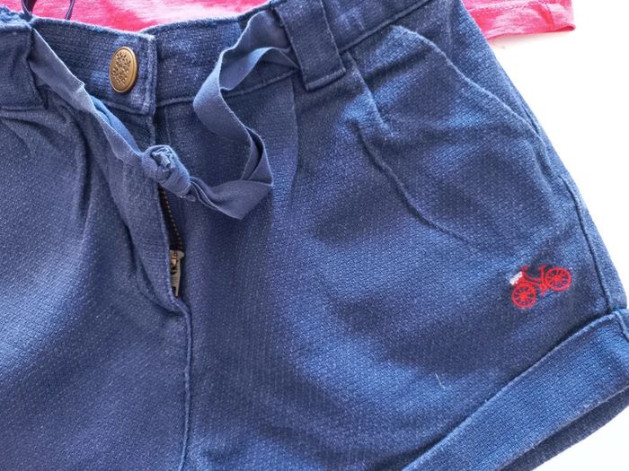 Tee shirt rouge manches longues (dessin craquelé cf photo) Short marine