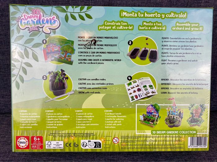 NЕUF sous blister Contenu du pack: - Maison en carton - 3 pots rectangulaires - 2 Pipette - 2 blocs de terre en fibre de coco - 1 enveloppe de graines 8412668194700