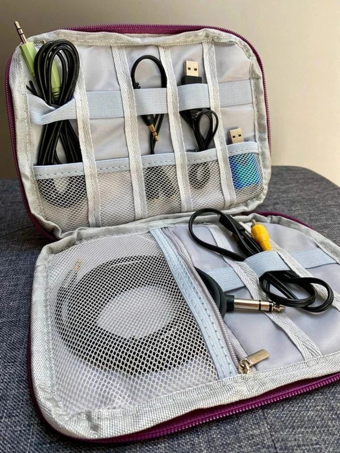 Sac Organisateur pour câbles 15 Emplacements Voyage Violet NЕUF - photo numéro 1