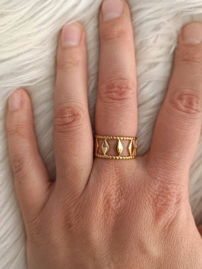 Bague dorée en acier inoxydable réglable motif triangles Easyclothes Neuf - photo numéro 1