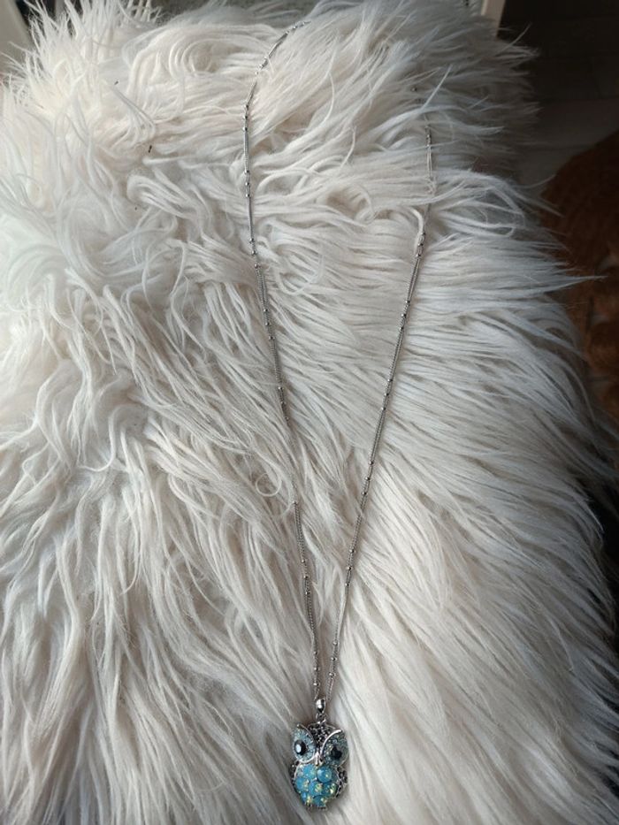Collier argenté en acier inoxydable pendentif hibou à strass Neuf - photo numéro 1