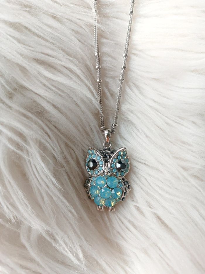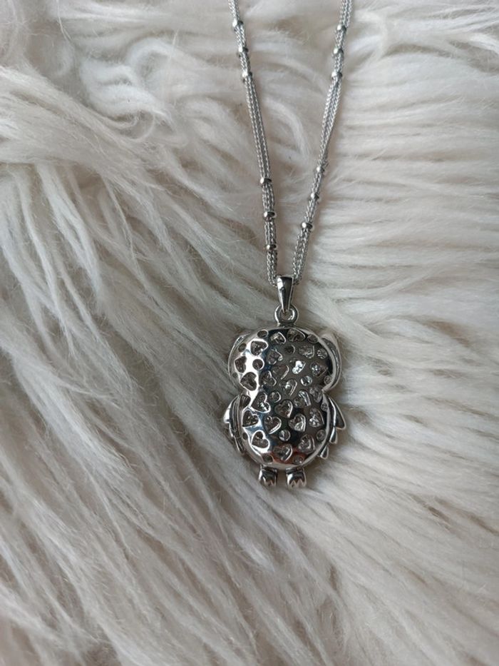 Collier argenté en acier inoxydable pendentif hibou à strass Neuf - photo numéro 3