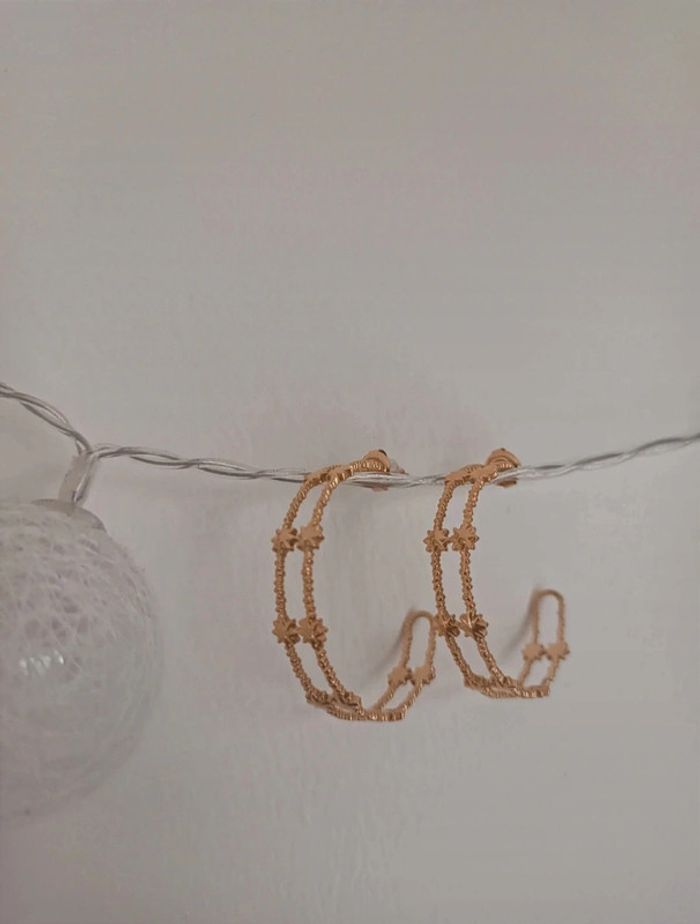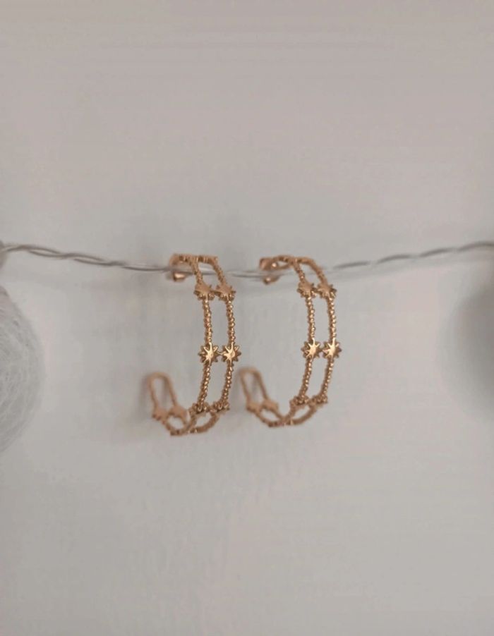 Boucles d'oreilles "Kelian" créoles dorées en acier inoxydable motif étoiles Bohm Neuf - photo numéro 5