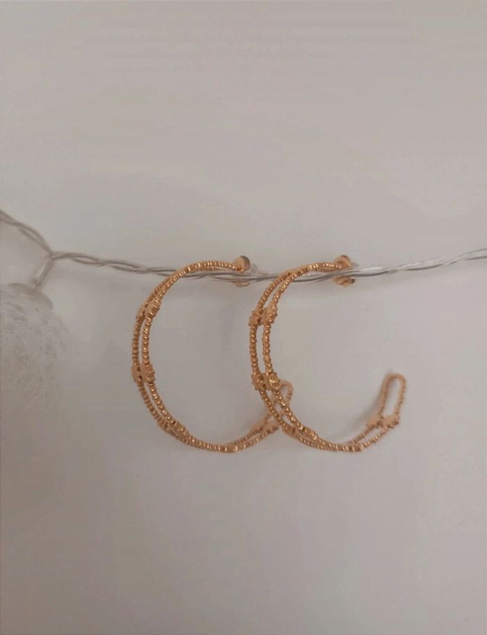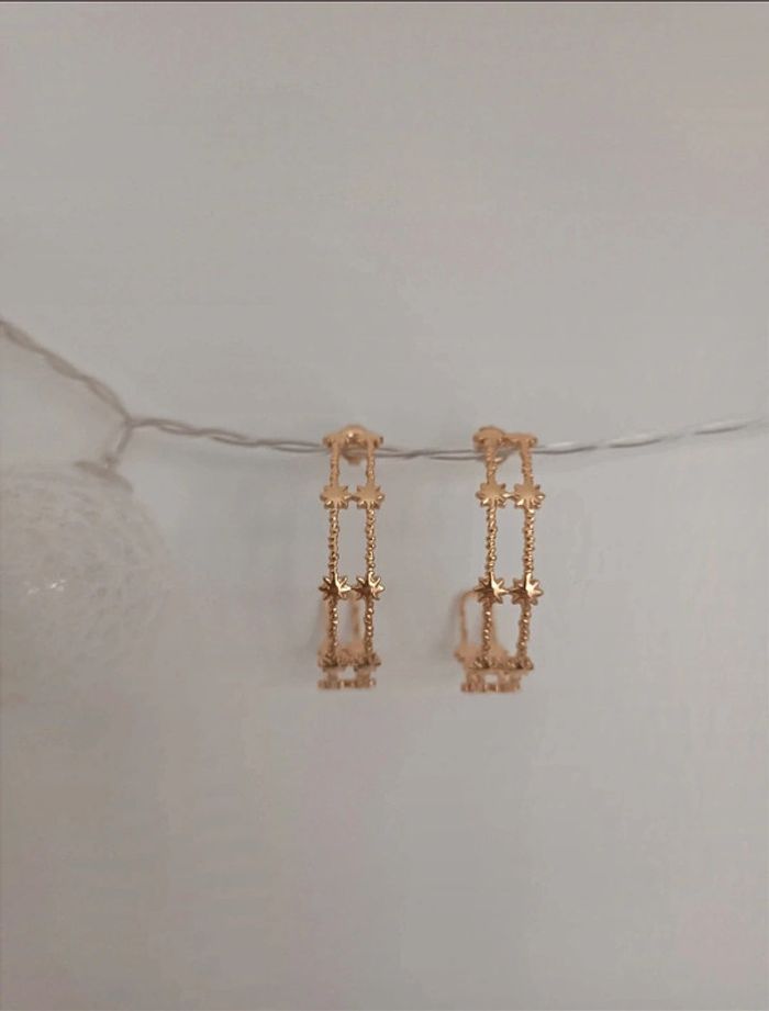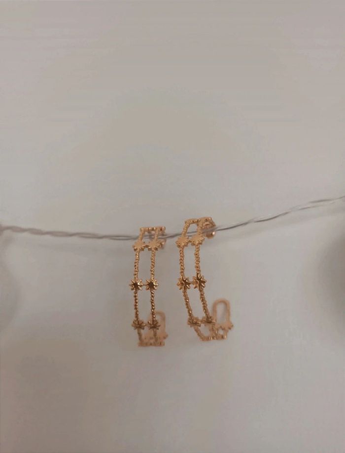 Boucles d'oreilles "Kelian" créoles dorées en acier inoxydable motif étoiles Bohm Neuf - photo numéro 4