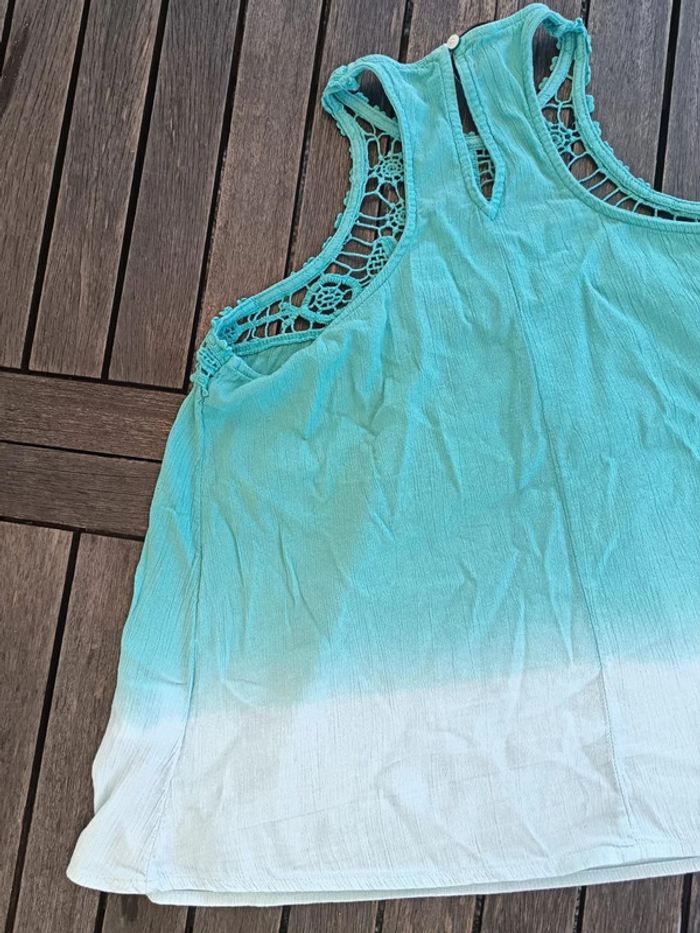 📃 𝐃𝐞́𝐭𝐚𝐢𝐥𝐬 : corsage, top, chemise forme débardeur évasé avec broderie sur le haut et dégradé sur le bas