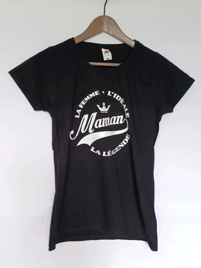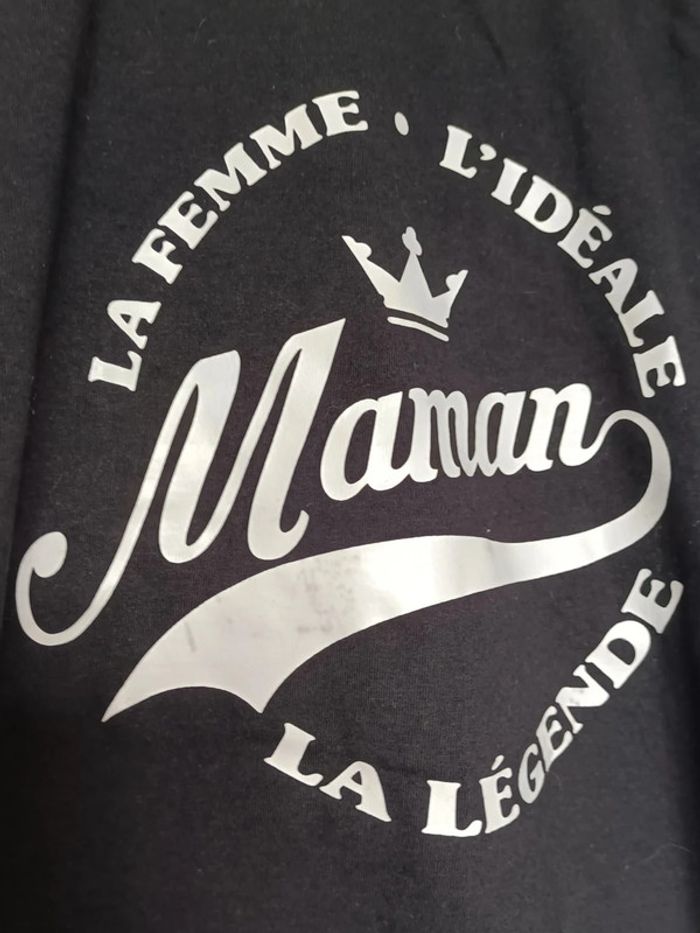 📃 𝐃𝐞́𝐭𝐚𝐢𝐥𝐬 : tee shirt à manches courtes et col rond avec le logo avec écriture La Femme L'Idéale Maman La Légende avec un swoosh sur le devant