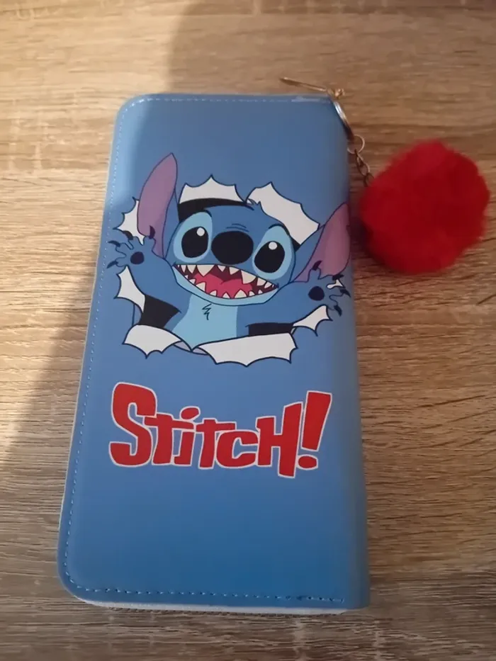 Porte feuille stitch avec porte clefs pompon rouge neuf
