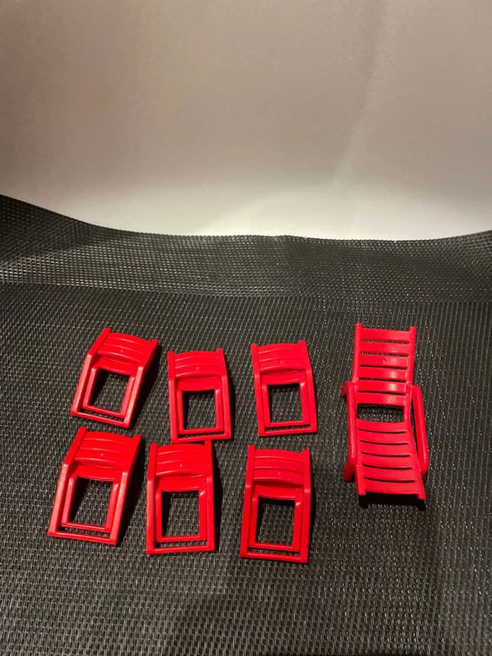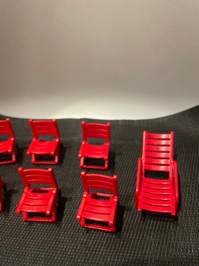 Playmobil lot 6 chaises pliantes rouges + transat  3230 3647 3728 3864 3945 4826 maison jardin - photo numéro 1