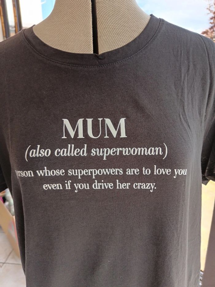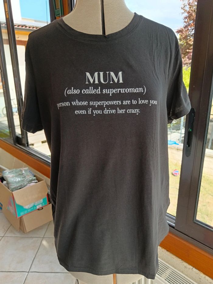 T-shirt Kiabi gris foncé imprimé "Mum" avec définition humoristique en anglais imprimée en blanc, taille XL. En parfait état Mes autres articles femme XL/42 par ici : #mmeloliie78femmeXL42 Remises automatiques sur les lots, profitez-en! 👍 Envois rapides via Mondial Relais et Vinted Go 📦🚀