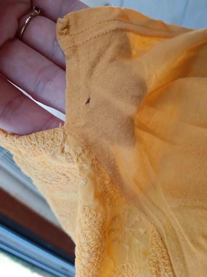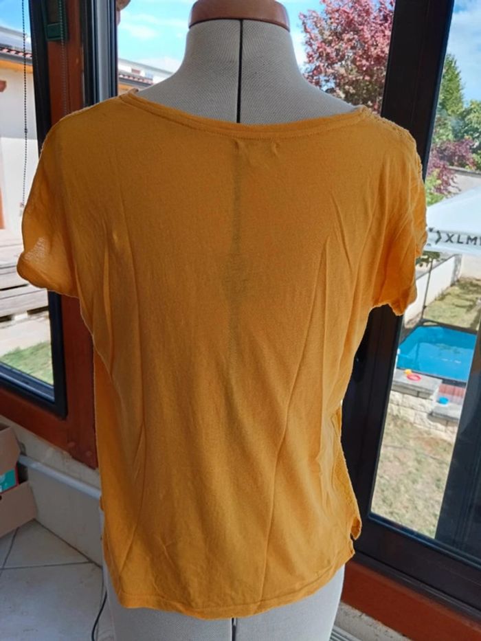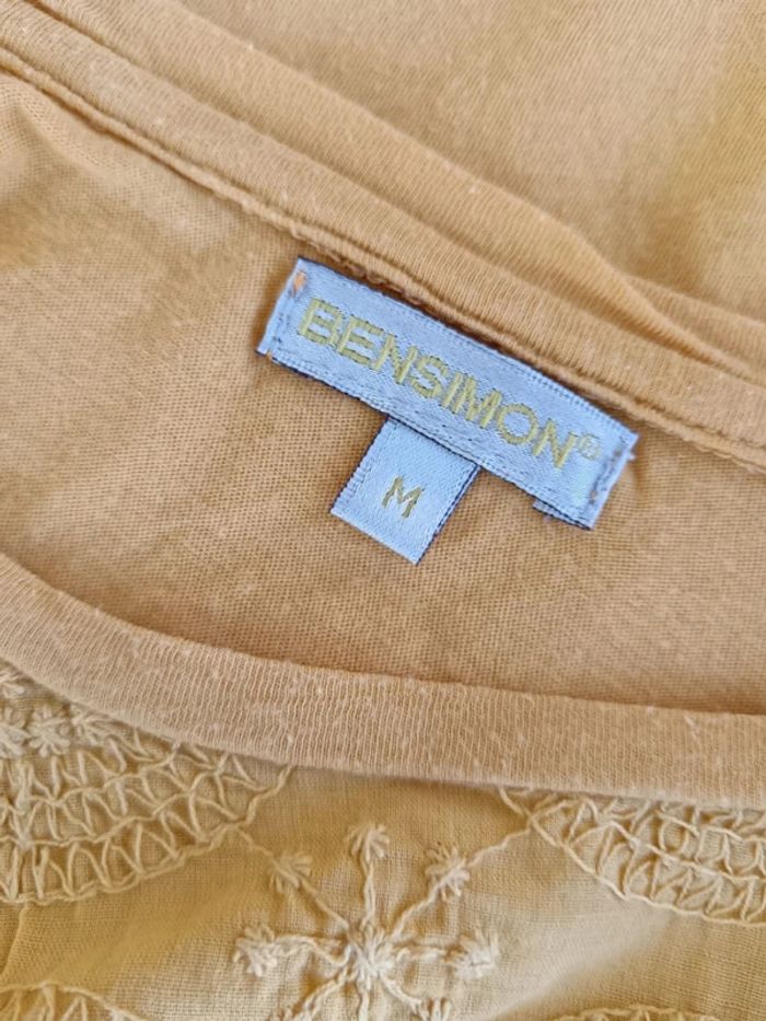 T-shirt Bensimon taille M. Coloris jaune moutarde, broderie anglaise sur l'avant. En très bon état, un petit accroc sur le côté en bas (voir dernière photo) Mes autres articles femme M/38 par ici : #mmeloliie78femmeM38 Remises automatiques sur les lots, profitez-en! 👍 Envois rapides via Mondial Relais et Vinted Go 📦🚀