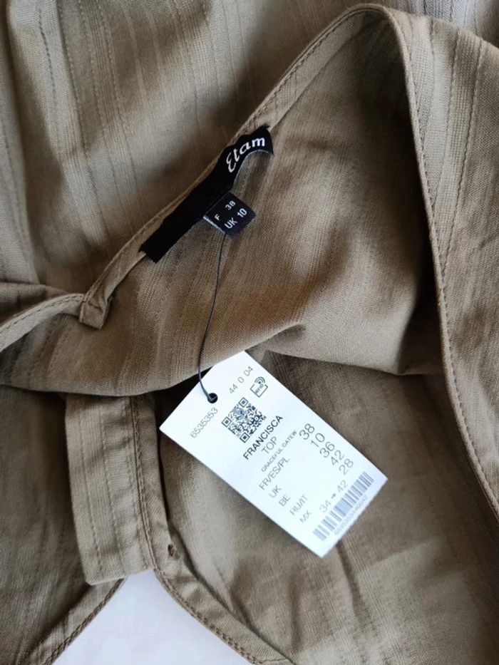 Top Etam, modèle Francisca, coloris kaki taille 38. Boutonnières à l'avant. Neuf avec étiquette. Mes autres articles femme M/38 par ici : #mmeloliie78femmeM38 Remises automatiques sur les lots, profitez-en! 👍 Envois rapides via Mondial Relais et Vinted Go 📦🚀