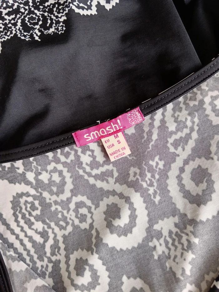 Robe noire imprimé blanc Smash! Taille M. Lien à nouer à la taille. En très bon état. Mes autres articles femme M/38 par ici : #mmeloliie78femmeM38 Remises automatiques sur les lots, profitez-en! 👍 Envois rapides via Mondial Relais et Vinted Go 📦🚀
